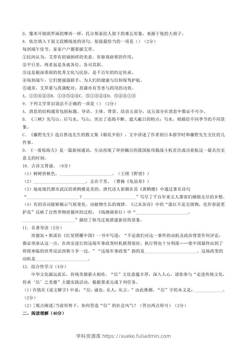2023-2024学年山东省菏泽市曹县八年级上学期期中语文试题及答案(Word版)学科资源库1年前发布关注私信29152023-2024学年山东省菏泽市曹县八年级上学期期中语文试题及答案(Word版)此内容为付费资源,请付费后查看¥10黄金会员免费钻石会员免费立即购买您当前未登录!建议登陆后购买,可保存购买订单格式doc页数7 页大小131.50 KB付费资源 预览已结束,还剩4页未读,开通会员后可免费下载高清完整文档 © 版权声明文章版权归作者所有,未经允许请勿转载。THE END初中语文 喜欢就支持一下吧点赞15 分享QQ空间微博QQ好友海报分享复制链接收藏