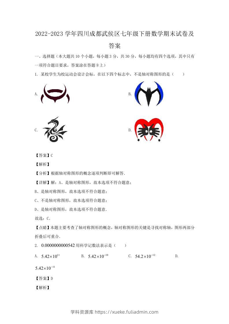 2022-2023学年四川成都武侯区七年级下册数学期末试卷及答案(Word版)学科资源库1年前发布关注私信4352022-2023学年四川成都武侯区七年级下册数学期末试卷及答案(Word版)此内容为付费资源,请付费后查看¥10黄金会员免费钻石会员免费立即购买您当前未登录!建议登陆后购买,可保存购买订单格式doc页数20 页大小1.52 MB付费资源 ——预览已结束,还剩19页未读——开通会员后可免费下载高清完整文档 © 版权声明文章版权归作者所有,未经允许请勿转载。THE END初中数学 喜欢就支持一下吧点赞5 分享QQ空间微博QQ好友海报分享复制链接收藏