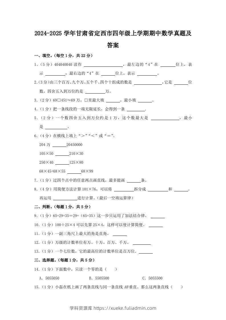 2024-2025学年甘肃省定西市四年级上学期期中数学真题及答案(Word版)学科资源库12个月前发布关注私信44132024-2025学年甘肃省定西市四年级上学期期中数学真题及答案(Word版)此内容为付费资源,请付费后查看¥10黄金会员免费钻石会员免费立即购买您当前未登录!建议登陆后购买,可保存购买订单格式doc页数13 页大小107.52 KB付费资源 ——预览已结束,还剩12页未读——开通会员后可免费下载高清完整文档 © 版权声明文章版权归作者所有,未经允许请勿转载。THE END小学数学 喜欢就支持一下吧点赞13 分享QQ空间微博QQ好友海报分享复制链接收藏