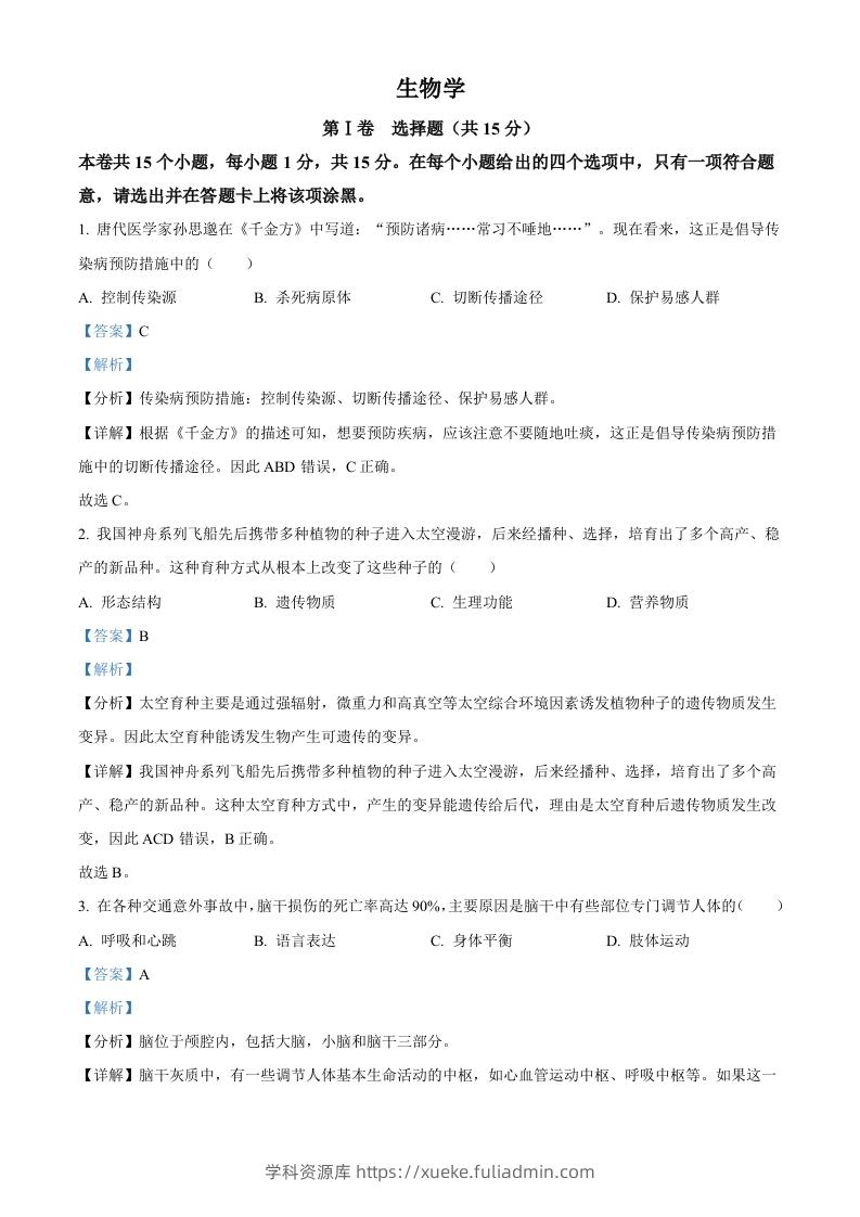 2023年山西省阳泉市中考生物真题(含答案)学科资源库12个月前发布关注私信46152023年山西省阳泉市中考生物真题(含答案)此内容为付费资源,请付费后查看¥10黄金会员免费钻石会员免费立即购买您当前未登录!建议登陆后购买,可保存购买订单格式docx页数15 页大小912.18 KB付费资源 ——预览已结束,还剩14页未读——开通会员后可免费下载高清完整文档 © 版权声明文章版权归作者所有,未经允许请勿转载。THE END中考真题 喜欢就支持一下吧点赞15 分享QQ空间微博QQ好友海报分享复制链接收藏