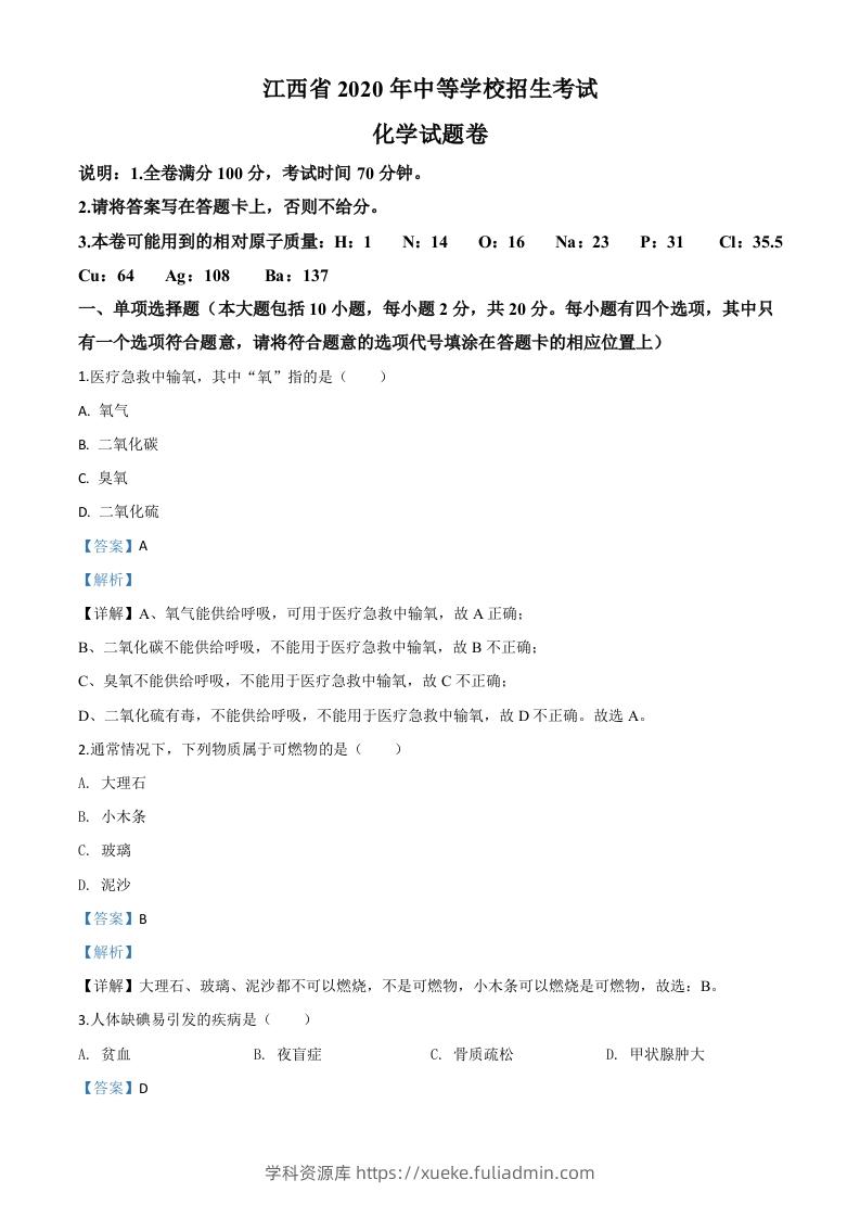 江西省2020年中考化学试题(含答案)学科资源库12个月前发布关注私信3115江西省2020年中考化学试题(含答案)此内容为付费资源,请付费后查看¥10黄金会员免费钻石会员免费立即购买您当前未登录!建议登陆后购买,可保存购买订单格式doc页数19 页大小493.50 KB付费资源 ——预览已结束,还剩18页未读——开通会员后可免费下载高清完整文档 © 版权声明文章版权归作者所有,未经允许请勿转载。THE END中考真题 喜欢就支持一下吧点赞15 分享QQ空间微博QQ好友海报分享复制链接收藏