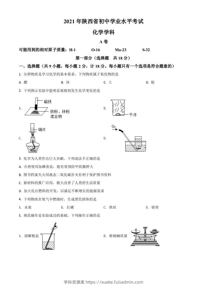 陕西省2021年中考化学试题(空白卷)学科资源库12个月前发布关注私信3415陕西省2021年中考化学试题(空白卷)此内容为付费资源,请付费后查看¥10黄金会员免费钻石会员免费立即购买您当前未登录!建议登陆后购买,可保存购买订单格式doc页数7 页大小398.50 KB付费资源 ——预览已结束,还剩6页未读——开通会员后可免费下载高清完整文档 © 版权声明文章版权归作者所有,未经允许请勿转载。THE END中考真题 喜欢就支持一下吧点赞15 分享QQ空间微博QQ好友海报分享复制链接收藏