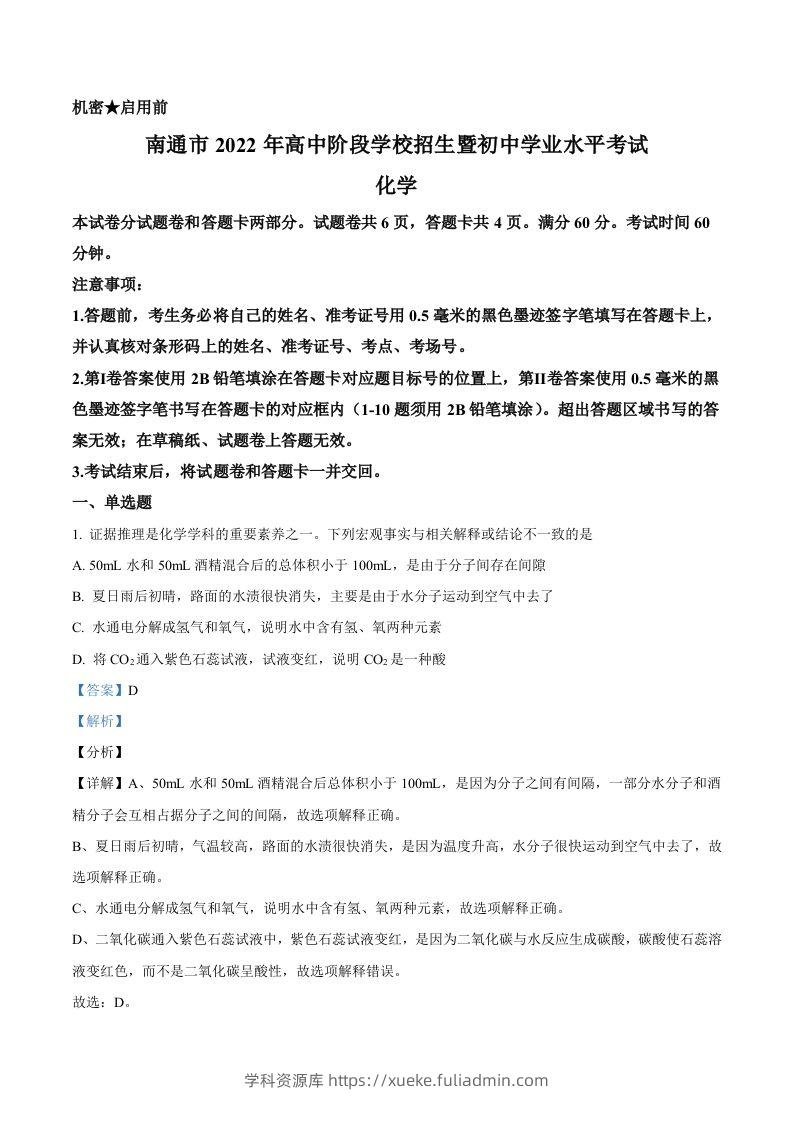 2022年江苏省南通市中考化学真题(含答案)学科资源库12个月前发布关注私信53122022年江苏省南通市中考化学真题(含答案)此内容为付费资源,请付费后查看¥10黄金会员免费钻石会员免费立即购买您当前未登录!建议登陆后购买,可保存购买订单格式docx页数14 页大小162.45 KB付费资源 ——预览已结束,还剩13页未读——开通会员后可免费下载高清完整文档 © 版权声明文章版权归作者所有,未经允许请勿转载。THE END中考真题 喜欢就支持一下吧点赞12 分享QQ空间微博QQ好友海报分享复制链接收藏