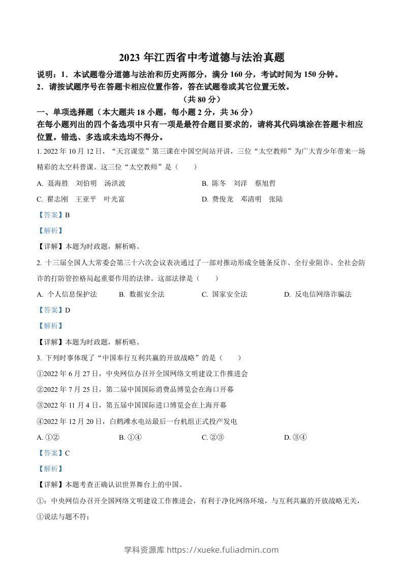 2023年江西省中考道德与法治真题(含答案)(1)学科资源库12个月前发布关注私信43132023年江西省中考道德与法治真题(含答案)(1)此内容为付费资源,请付费后查看¥10黄金会员免费钻石会员免费立即购买您当前未登录!建议登陆后购买,可保存购买订单格式docx页数17 页大小193.49 KB付费资源 ——预览已结束,还剩16页未读——开通会员后可免费下载高清完整文档 © 版权声明文章版权归作者所有,未经允许请勿转载。THE END中考真题 喜欢就支持一下吧点赞13 分享QQ空间微博QQ好友海报分享复制链接收藏