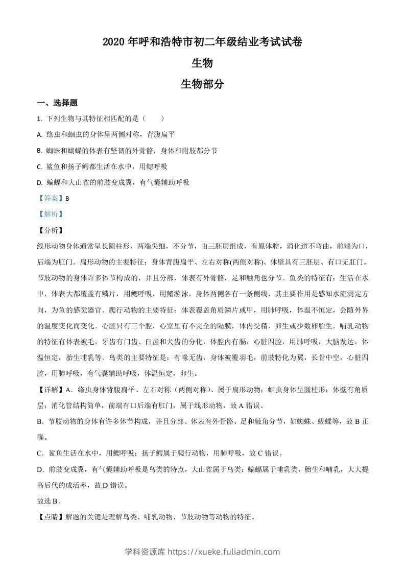 内蒙古呼和浩特市2020年中考生物试题(含答案)学科资源库12个月前发布关注私信489内蒙古呼和浩特市2020年中考生物试题(含答案)此内容为付费资源,请付费后查看¥10黄金会员免费钻石会员免费立即购买您当前未登录!建议登陆后购买,可保存购买订单格式doc页数18 页大小630.00 KB付费资源 ——预览已结束,还剩17页未读——开通会员后可免费下载高清完整文档 © 版权声明文章版权归作者所有,未经允许请勿转载。THE END中考真题 喜欢就支持一下吧点赞9 分享QQ空间微博QQ好友海报分享复制链接收藏
