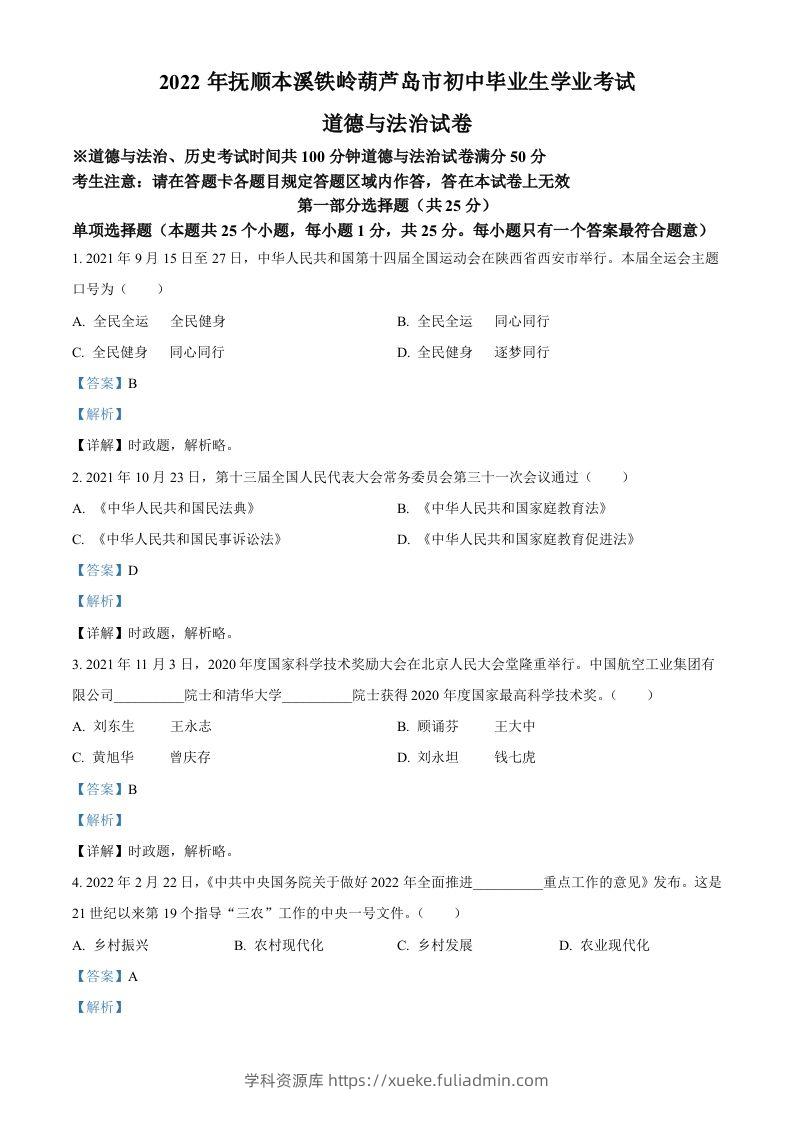 2022年辽宁省抚顺市、本溪市、铁岭市、葫芦岛市中考道德与法治真题(含答案)学科资源库12个月前发布关注私信2872022年辽宁省抚顺市、本溪市、铁岭市、葫芦岛市中考道德与法治真题(含答案)此内容为付费资源,请付费后查看¥10黄金会员免费钻石会员免费立即购买您当前未登录!建议登陆后购买,可保存购买订单格式docx页数13 页大小27.07 KB付费资源 ——预览已结束,还剩12页未读——开通会员后可免费下载高清完整文档 © 版权声明文章版权归作者所有,未经允许请勿转载。THE END中考真题 喜欢就支持一下吧点赞7 分享QQ空间微博QQ好友海报分享复制链接收藏