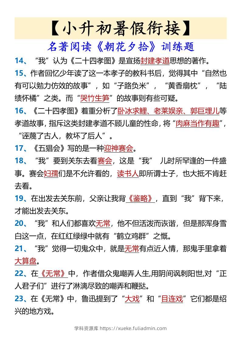 【小升初暑假衔接】名著阅读《朝花夕拾》训练题-小升初语文学科资源库2个月前发布关注私信375【小升初暑假衔接】名著阅读《朝花夕拾》训练题-小升初语文此内容为付费资源,请付费后查看¥10黄金会员免费钻石会员免费立即购买您当前未登录!建议登陆后购买,可保存购买订单格式docx页数3 页大小310.03 KB付费资源 ——预览已结束,还剩1页未读——开通会员后可免费下载高清完整文档 © 版权声明文章版权归作者所有,未经允许请勿转载。THE END小升初 喜欢就支持一下吧点赞5 分享QQ空间微博QQ好友海报分享复制链接收藏