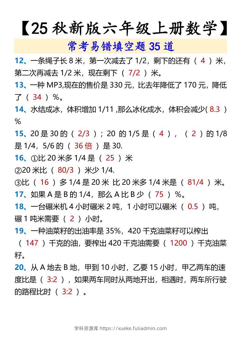 【2025秋新版】【六年级上册数学】常考易错填空题35道学科资源库3个月前发布关注私信377【2025秋新版】【六年级上册数学】常考易错填空题35道此内容为付费资源,请付费后查看¥10黄金会员免费钻石会员免费立即购买您当前未登录!建议登陆后购买,可保存购买订单格式pdf页数4 页大小126.27 KB付费资源 ——预览已结束,还剩2页未读——开通会员后可免费下载高清完整文档 © 版权声明文章版权归作者所有,未经允许请勿转载。THE END小学数学 喜欢就支持一下吧点赞7 分享QQ空间微博QQ好友海报分享复制链接收藏