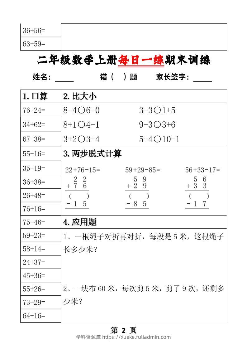 【2025秋新版】二年级数学上册每日一练期末训练学科资源库3个月前发布关注私信4114【2025秋新版】二年级数学上册每日一练期末训练此内容为付费资源,请付费后查看¥10黄金会员免费钻石会员免费立即购买您当前未登录!建议登陆后购买,可保存购买订单格式pdf页数6 页大小152.08 KB付费资源 ——预览已结束,还剩4页未读——开通会员后可免费下载高清完整文档 © 版权声明文章版权归作者所有,未经允许请勿转载。THE END小学数学 喜欢就支持一下吧点赞14 分享QQ空间微博QQ好友海报分享复制链接收藏