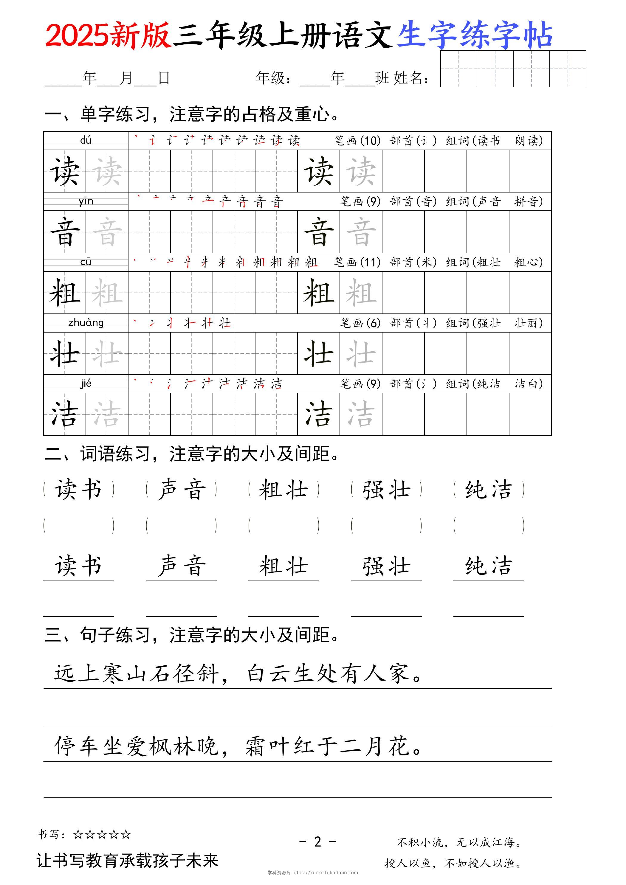2025新版三年级上册语文生字练字帖(卷面书写练字帖)50页学科资源库1个月前发布关注私信3852025新版三年级上册语文生字练字帖(卷面书写练字帖)50页此内容为付费资源,请付费后查看¥10黄金会员免费钻石会员免费立即购买您当前未登录!建议登陆后购买,可保存购买订单格式pdf页数50 页大小1.48 MB付费资源 ——预览已结束,还剩48页未读——开通会员后可免费下载高清完整文档 © 版权声明文章版权归作者所有,未经允许请勿转载。THE END小学语文 喜欢就支持一下吧点赞5 分享QQ空间微博QQ好友海报分享复制链接收藏