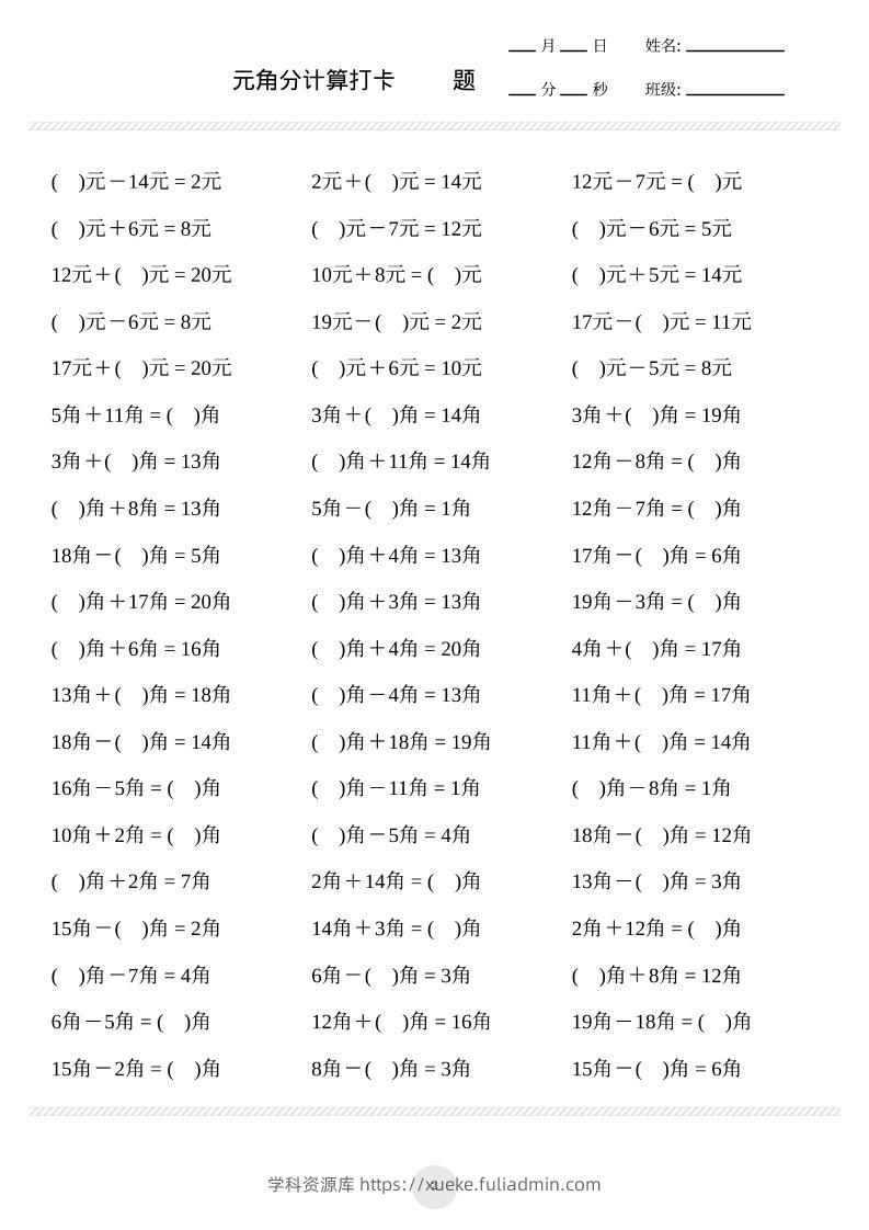 一上数学元角分计算专项练习1000题学科资源库1个月前发布关注私信336一上数学元角分计算专项练习1000题此内容为付费资源,请付费后查看¥10黄金会员免费钻石会员免费立即购买您当前未登录!建议登陆后购买,可保存购买订单格式pdf页数17 页大小1.69 MB付费资源 ——预览已结束,还剩15页未读——开通会员后可免费下载高清完整文档 © 版权声明文章版权归作者所有,未经允许请勿转载。THE END小学数学 喜欢就支持一下吧点赞6 分享QQ空间微博QQ好友海报分享复制链接收藏