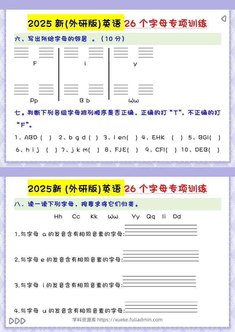 三上英语-2025新(外研版)英语26个字母专项训练学科资源库1个月前发布关注私信2813三上英语-2025新(外研版)英语26个字母专项训练此内容为付费资源,请付费后查看¥10黄金会员免费钻石会员免费立即购买您当前未登录!建议登陆后购买,可保存购买订单格式pdf页数3 页大小197.85 KB付费资源 ——预览已结束,还剩1页未读——开通会员后可免费下载高清完整文档 © 版权声明文章版权归作者所有,未经允许请勿转载。THE END小学英语 喜欢就支持一下吧点赞13 分享QQ空间微博QQ好友海报分享复制链接收藏