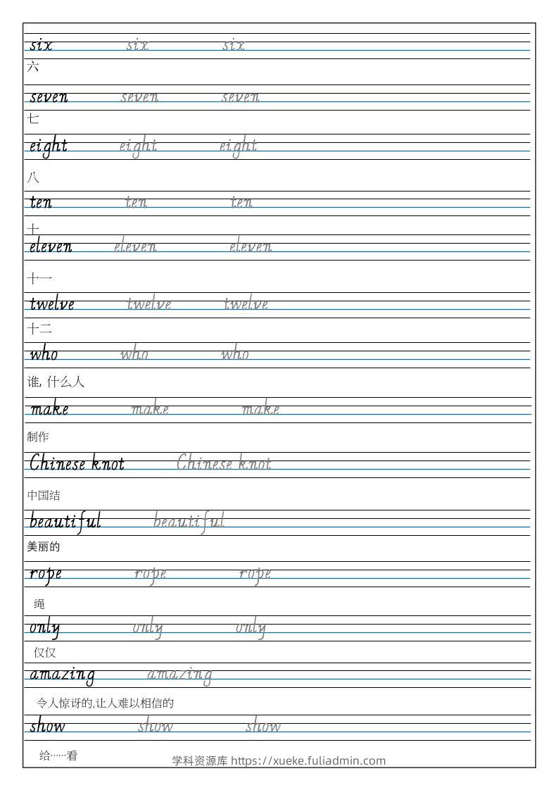 三上英语-(外研三起)Unit4Funwithmunbers单词书写练习学科资源库1个月前发布关注私信4714三上英语-(外研三起)Unit4Funwithmunbers单词书写练习此内容为付费资源,请付费后查看¥10黄金会员免费钻石会员免费立即购买您当前未登录!建议登陆后购买,可保存购买订单格式pdf页数3 页大小198.79 KB付费资源 ——预览已结束,还剩1页未读——开通会员后可免费下载高清完整文档 © 版权声明文章版权归作者所有,未经允许请勿转载。THE END小学英语 喜欢就支持一下吧点赞14 分享QQ空间微博QQ好友海报分享复制链接收藏