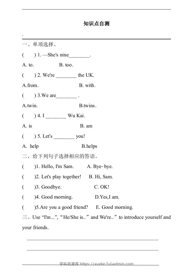 三上英语-Unit1Let’sbefriends!知识总结+练习(含答案)学科资源库1个月前发布关注私信4715三上英语-Unit1Let’sbefriends!知识总结+练习(含答案)此内容为付费资源,请付费后查看¥10黄金会员免费钻石会员免费立即购买您当前未登录!建议登陆后购买,可保存购买订单格式doc页数3 页大小26.50 KB付费资源 ——预览已结束,还剩1页未读——开通会员后可免费下载高清完整文档 © 版权声明文章版权归作者所有,未经允许请勿转载。THE END小学英语 喜欢就支持一下吧点赞15 分享QQ空间微博QQ好友海报分享复制链接收藏