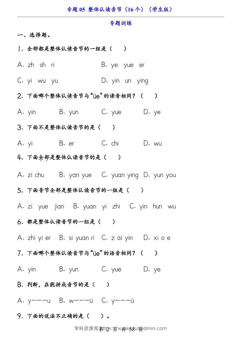 一上语文-专题05整体认读音节(16个)(知识+训练)学科资源库34天前发布关注私信3612一上语文-专题05整体认读音节(16个)(知识+训练)此内容为付费资源,请付费后查看¥10黄金会员免费钻石会员免费立即购买您当前未登录!建议登陆后购买,可保存购买订单格式pdf页数58 页大小1.47 MB付费资源 ——预览已结束,还剩56页未读——开通会员后可免费下载高清完整文档 © 版权声明文章版权归作者所有,未经允许请勿转载。THE END小学语文 喜欢就支持一下吧点赞12 分享QQ空间微博QQ好友海报分享复制链接收藏