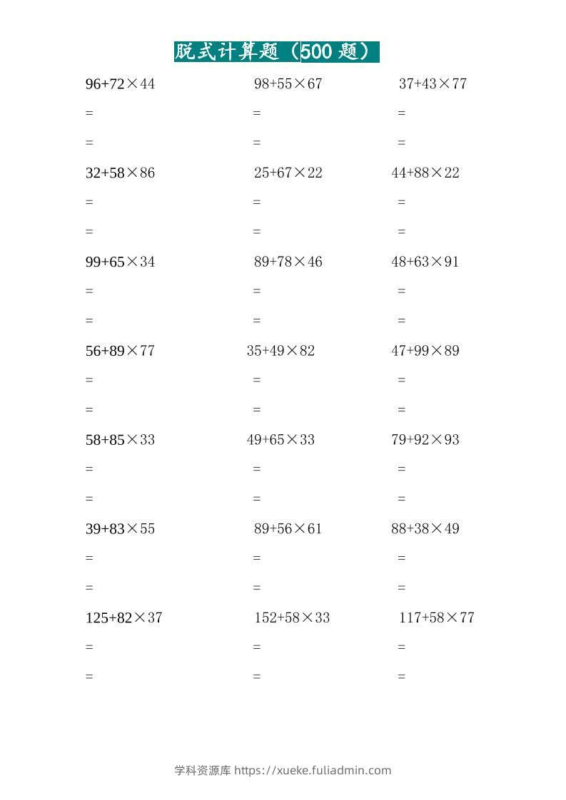 三上数学-两位乘两位脱式计算题(500题)学科资源库1个月前发布关注私信348三上数学-两位乘两位脱式计算题(500题)此内容为付费资源,请付费后查看¥10黄金会员免费钻石会员免费立即购买您当前未登录!建议登陆后购买,可保存购买订单格式pdf页数15 页大小312.58 KB付费资源 ——预览已结束,还剩13页未读——开通会员后可免费下载高清完整文档 © 版权声明文章版权归作者所有,未经允许请勿转载。THE END小学数学 喜欢就支持一下吧点赞8 分享QQ空间微博QQ好友海报分享复制链接收藏