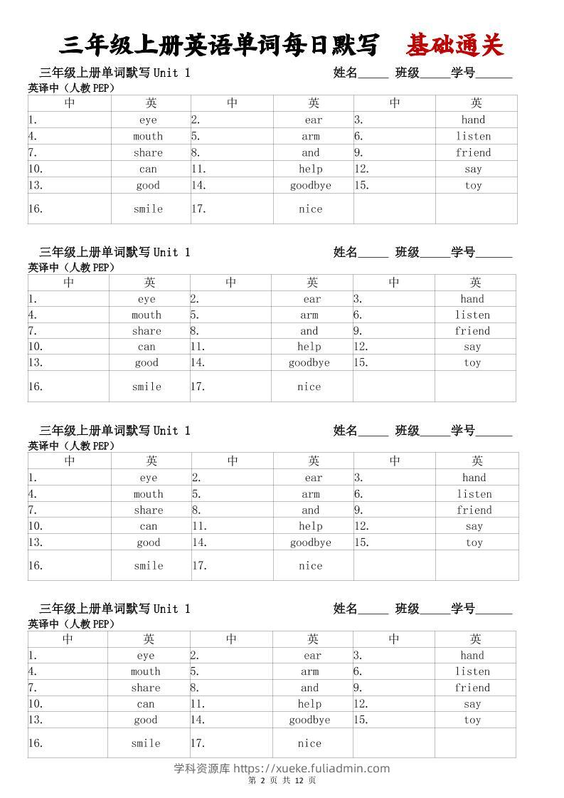 三年级上册英语单词每日默写基础通关学科资源库1个月前发布关注私信315三年级上册英语单词每日默写基础通关此内容为付费资源,请付费后查看¥10黄金会员免费钻石会员免费立即购买您当前未登录!建议登陆后购买,可保存购买订单格式pdf页数12 页大小252.81 KB付费资源 ——预览已结束,还剩10页未读——开通会员后可免费下载高清完整文档 © 版权声明文章版权归作者所有,未经允许请勿转载。THE END小学英语 喜欢就支持一下吧点赞5 分享QQ空间微博QQ好友海报分享复制链接收藏