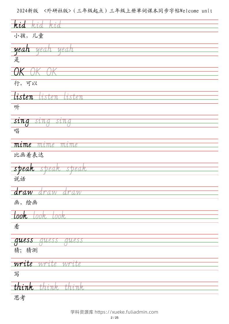 25秋外研社版(三年级起点)三年级上册英语单词课本同步字帖学科资源库4天前发布关注私信30525秋外研社版(三年级起点)三年级上册英语单词课本同步字帖此内容为付费资源,请付费后查看¥10黄金会员免费钻石会员免费立即购买您当前未登录!建议登陆后购买,可保存购买订单格式pdf页数25 页大小917.83 KB付费资源 ——预览已结束,还剩23页未读——开通会员后可免费下载高清完整文档 © 版权声明文章版权归作者所有,未经允许请勿转载。THE END小学英语 喜欢就支持一下吧点赞5 分享QQ空间微博QQ好友海报分享复制链接收藏
