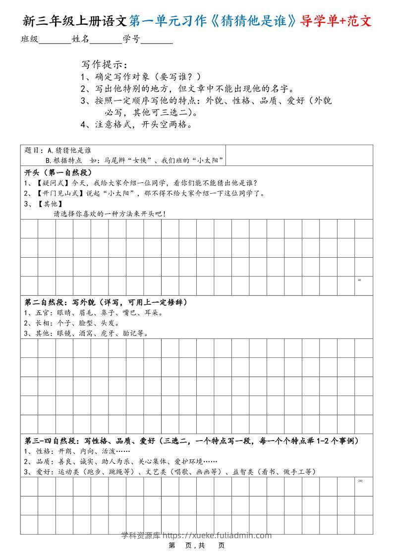 新三上语文1-8单元习作导学单(写作框架+范文)16页学科资源库55天前发布关注私信495新三上语文1-8单元习作导学单(写作框架+范文)16页此内容为付费资源,请付费后查看¥10黄金会员免费钻石会员免费立即购买您当前未登录!建议登陆后购买,可保存购买订单格式pdf页数17 页大小1.24 MB付费资源 ——预览已结束,还剩15页未读——开通会员后可免费下载高清完整文档 © 版权声明文章版权归作者所有,未经允许请勿转载。THE END小学语文 喜欢就支持一下吧点赞5 分享QQ空间微博QQ好友海报分享复制链接收藏