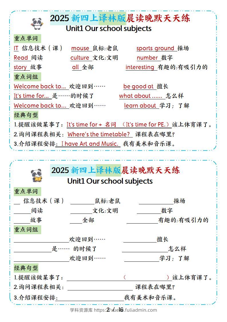 25新译林四上英语晨读晚默小纸条16天(16页)学科资源库54天前发布关注私信331225新译林四上英语晨读晚默小纸条16天(16页)此内容为付费资源,请付费后查看¥10黄金会员免费钻石会员免费立即购买您当前未登录!建议登陆后购买,可保存购买订单格式pdf页数16 页大小3.99 MB付费资源 ——预览已结束,还剩14页未读——开通会员后可免费下载高清完整文档 © 版权声明文章版权归作者所有,未经允许请勿转载。THE END小学英语 喜欢就支持一下吧点赞12 分享QQ空间微博QQ好友海报分享复制链接收藏