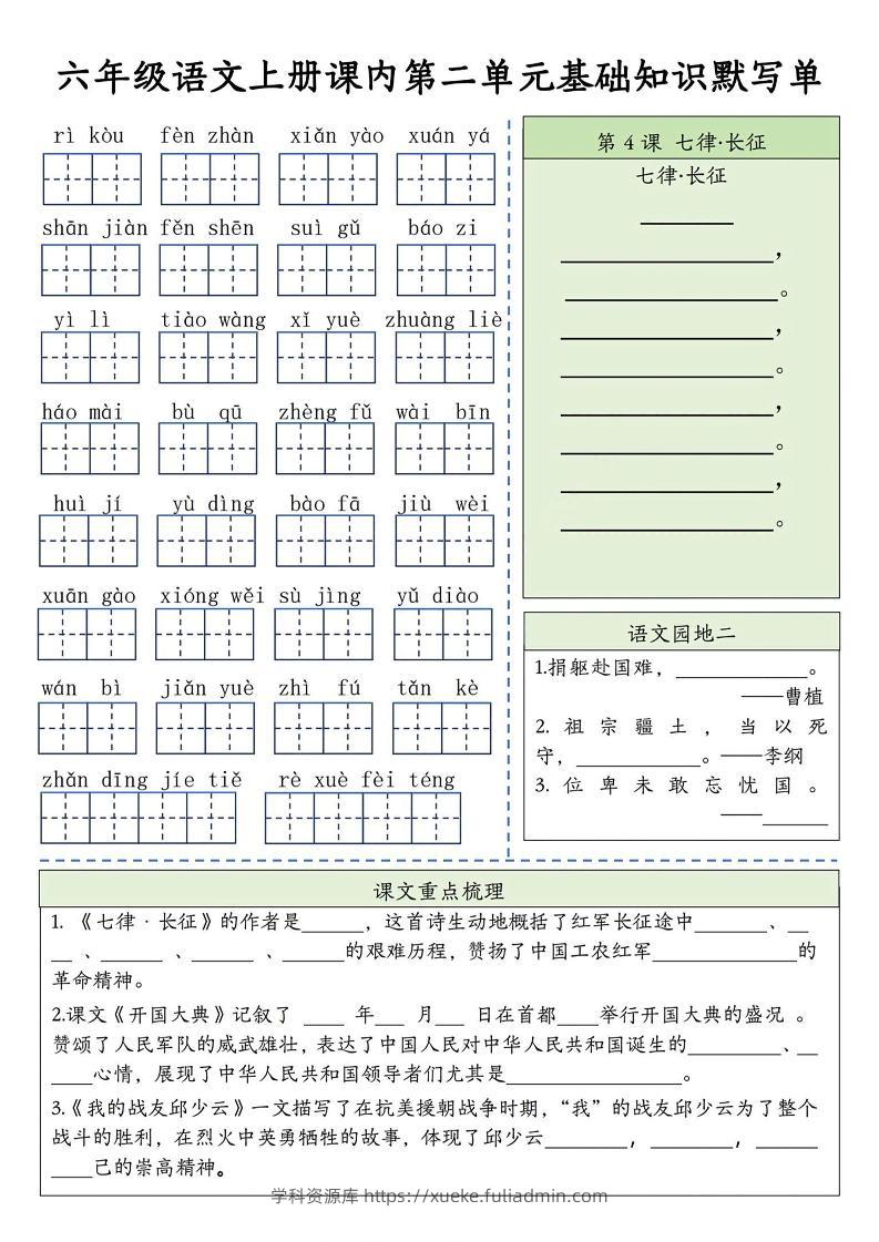 六上语文基础知识默写单(1-8单元)含答案16页学科资源库4小时前发布关注私信366六上语文基础知识默写单(1-8单元)含答案16页此内容为付费资源,请付费后查看¥10黄金会员免费钻石会员免费立即购买您当前未登录!建议登陆后购买,可保存购买订单格式pdf页数16 页大小7.69 MB付费资源 ——预览已结束,还剩14页未读——开通会员后可免费下载高清完整文档 © 版权声明文章版权归作者所有,未经允许请勿转载。THE END小学语文 喜欢就支持一下吧点赞6 分享QQ空间微博QQ好友海报分享复制链接收藏
