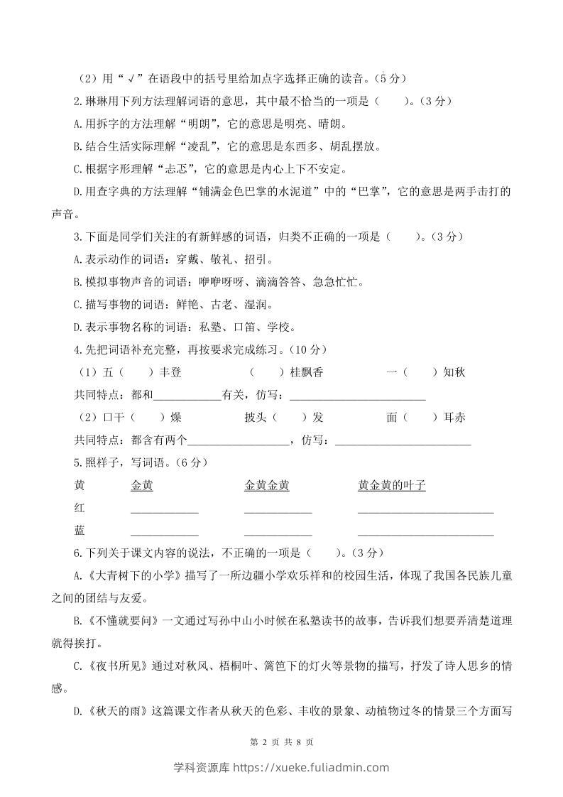 25-26学年三上语文第一次月考质量检测卷(含答题卡+答案16页)学科资源库昨天发布关注私信47525-26学年三上语文第一次月考质量检测卷(含答题卡+答案16页)此内容为付费资源,请付费后查看¥10黄金会员免费钻石会员免费立即购买您当前未登录!建议登陆后购买,可保存购买订单格式pdf页数16 页大小1.30 MB付费资源 ——预览已结束,还剩14页未读——开通会员后可免费下载高清完整文档 © 版权声明文章版权归作者所有,未经允许请勿转载。THE END小学语文 喜欢就支持一下吧点赞5 分享QQ空间微博QQ好友海报分享复制链接收藏