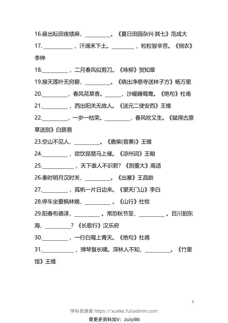 【1-6年级古诗词填空】1-6年级必考的古诗词填空练习(附答案)六上语文学科资源库33天前发布关注私信3214【1-6年级古诗词填空】1-6年级必考的古诗词填空练习(附答案)六上语文此内容为付费资源,请付费后查看¥10黄金会员免费钻石会员免费立即购买您当前未登录!建议登陆后购买,可保存购买订单格式pdf页数11 页大小989.13 KB付费资源 ——预览已结束,还剩9页未读——开通会员后可免费下载高清完整文档 © 版权声明文章版权归作者所有,未经允许请勿转载。THE END小学语文 喜欢就支持一下吧点赞14 分享QQ空间微博QQ好友海报分享复制链接收藏
