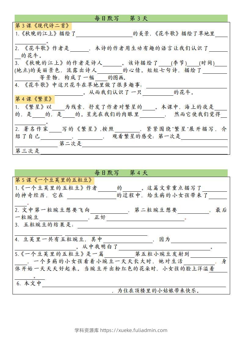 四上语文课文内容填空每日默写单学科资源库6小时前发布关注私信355四上语文课文内容填空每日默写单此内容为付费资源,请付费后查看¥10黄金会员免费钻石会员免费立即购买您当前未登录!建议登陆后购买,可保存购买订单格式pdf页数24 页大小2.05 MB付费资源 ——预览已结束,还剩22页未读——开通会员后可免费下载高清完整文档 © 版权声明文章版权归作者所有,未经允许请勿转载。THE END小学语文 喜欢就支持一下吧点赞5 分享QQ空间微博QQ好友海报分享复制链接收藏