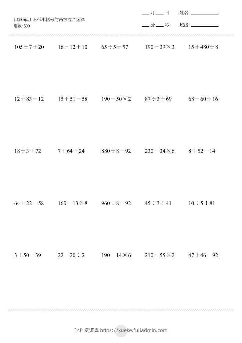 【不带小括号的两级混合运算500题】三上数学学科资源库26天前发布关注私信3311【不带小括号的两级混合运算500题】三上数学此内容为付费资源,请付费后查看¥10黄金会员免费钻石会员免费立即购买您当前未登录!建议登陆后购买,可保存购买订单格式pdf页数20 页大小213.51 KB付费资源 ——预览已结束,还剩18页未读——开通会员后可免费下载高清完整文档 © 版权声明文章版权归作者所有,未经允许请勿转载。THE END小学数学 喜欢就支持一下吧点赞11 分享QQ空间微博QQ好友海报分享复制链接收藏