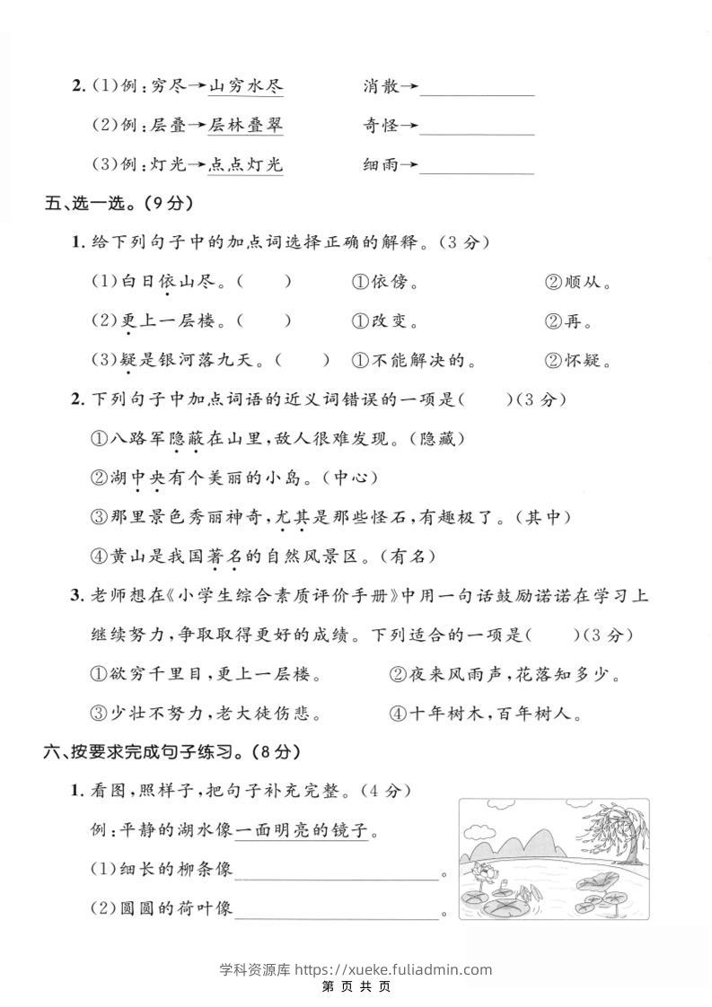 二年级上语文第四单元模拟测试卷3学科资源库21天前发布关注私信376二年级上语文第四单元模拟测试卷3此内容为付费资源,请付费后查看¥10黄金会员免费钻石会员免费立即购买您当前未登录!建议登陆后购买,可保存购买订单格式pdf页数5 页大小4.81 MB付费资源 ——预览已结束,还剩3页未读——开通会员后可免费下载高清完整文档 © 版权声明文章版权归作者所有,未经允许请勿转载。THE END小学语文 喜欢就支持一下吧点赞6 分享QQ空间微博QQ好友海报分享复制链接收藏