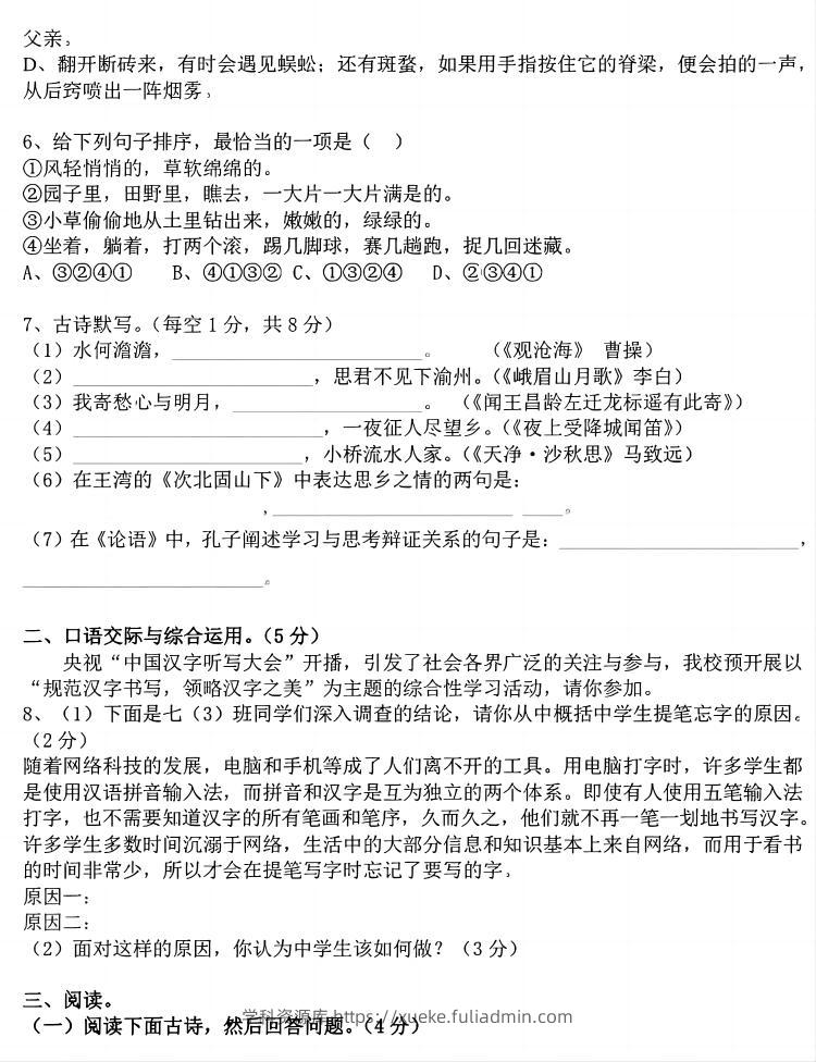 七年级上语文期中考试试卷学科资源库7天前发布关注私信406七年级上语文期中考试试卷此内容为付费资源,请付费后查看¥10黄金会员免费钻石会员免费立即购买您当前未登录!建议登陆后购买,可保存购买订单格式pdf页数8 页大小3.44 MB付费资源 ——预览已结束,还剩6页未读——开通会员后可免费下载高清完整文档 © 版权声明文章版权归作者所有,未经允许请勿转载。THE END初中语文 喜欢就支持一下吧点赞6 分享QQ空间微博QQ好友海报分享复制链接收藏