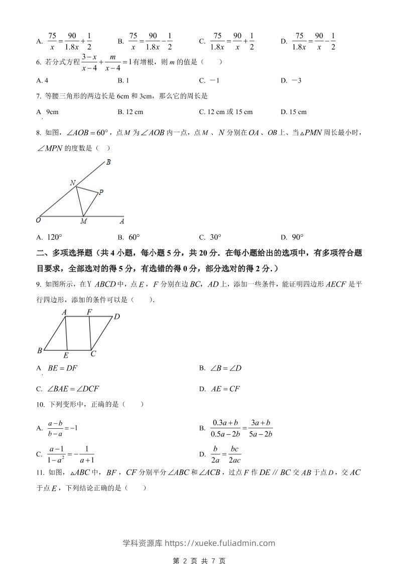 八年级上数学期末试卷(青岛版)学科资源库3天前发布关注私信225八年级上数学期末试卷(青岛版)此内容为付费资源,请付费后查看¥10黄金会员免费钻石会员免费立即购买您当前未登录!建议登陆后购买,可保存购买订单格式pdf页数28 页大小996.08 KB付费资源 ——预览已结束,还剩26页未读——开通会员后可免费下载高清完整文档 © 版权声明文章版权归作者所有,未经允许请勿转载。THE END初中数学 喜欢就支持一下吧点赞5 分享QQ空间微博QQ好友海报分享复制链接收藏