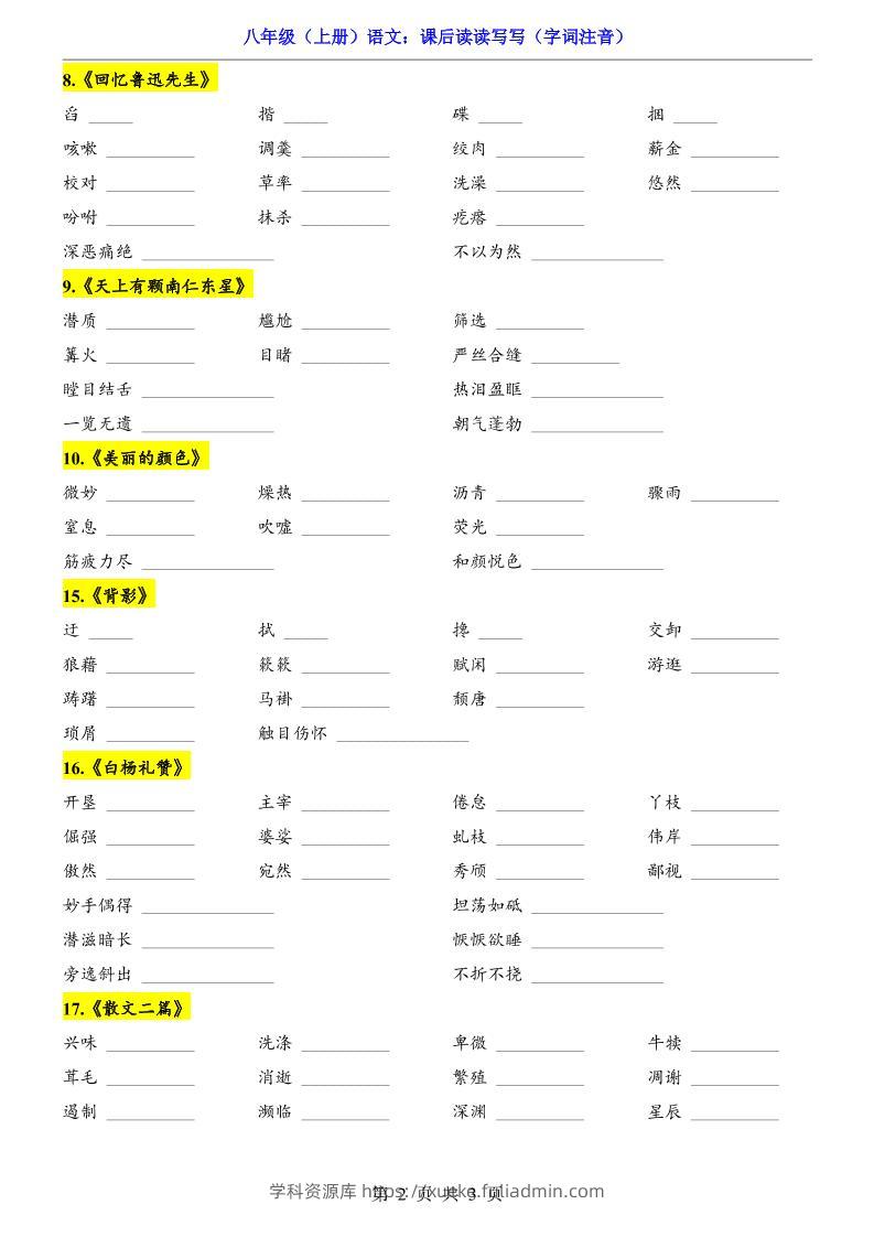 新八年级上语文课后读读写写(字词注音)学科资源库昨天发布关注私信2111新八年级上语文课后读读写写(字词注音)此内容为付费资源,请付费后查看¥10黄金会员免费钻石会员免费立即购买您当前未登录!建议登陆后购买,可保存购买订单格式pdf页数3 页大小240.97 KB付费资源 ——预览已结束,还剩1页未读——开通会员后可免费下载高清完整文档 © 版权声明文章版权归作者所有,未经允许请勿转载。THE END初中语文 喜欢就支持一下吧点赞11 分享QQ空间微博QQ好友海报分享复制链接收藏