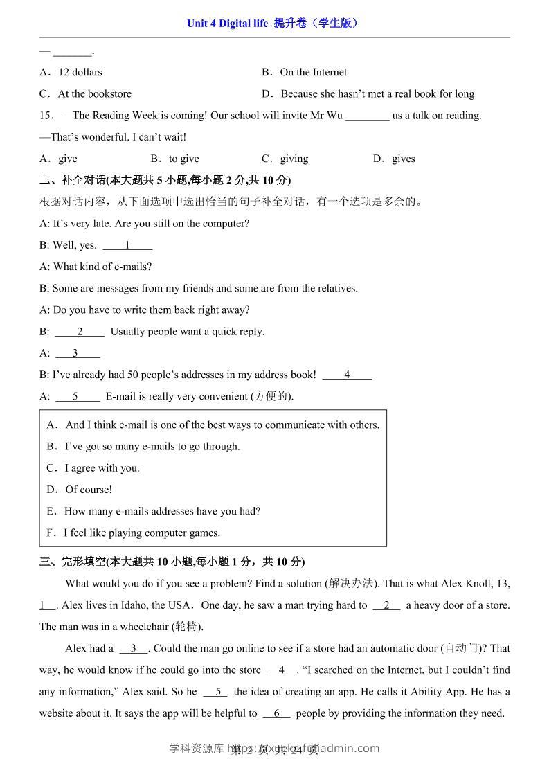 八年级上英语Unit4提升卷(外研版)学科资源库4小时前发布关注私信387八年级上英语Unit4提升卷(外研版)此内容为付费资源,请付费后查看¥10黄金会员免费钻石会员免费立即购买您当前未登录!建议登陆后购买,可保存购买订单格式pdf页数24 页大小969.85 KB付费资源 ——预览已结束,还剩22页未读——开通会员后可免费下载高清完整文档 © 版权声明文章版权归作者所有,未经允许请勿转载。THE END初中英语 喜欢就支持一下吧点赞7 分享QQ空间微博QQ好友海报分享复制链接收藏