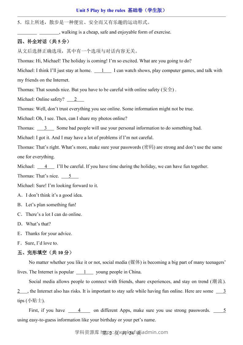 八年级上英语Unit5基础卷(外研版)学科资源库1小时前发布关注私信226八年级上英语Unit5基础卷(外研版)此内容为付费资源,请付费后查看¥10黄金会员免费钻石会员免费立即购买您当前未登录!建议登陆后购买,可保存购买订单格式pdf页数24 页大小978.97 KB付费资源 ——预览已结束,还剩22页未读——开通会员后可免费下载高清完整文档 © 版权声明文章版权归作者所有,未经允许请勿转载。THE END初中英语 喜欢就支持一下吧点赞6 分享QQ空间微博QQ好友海报分享复制链接收藏