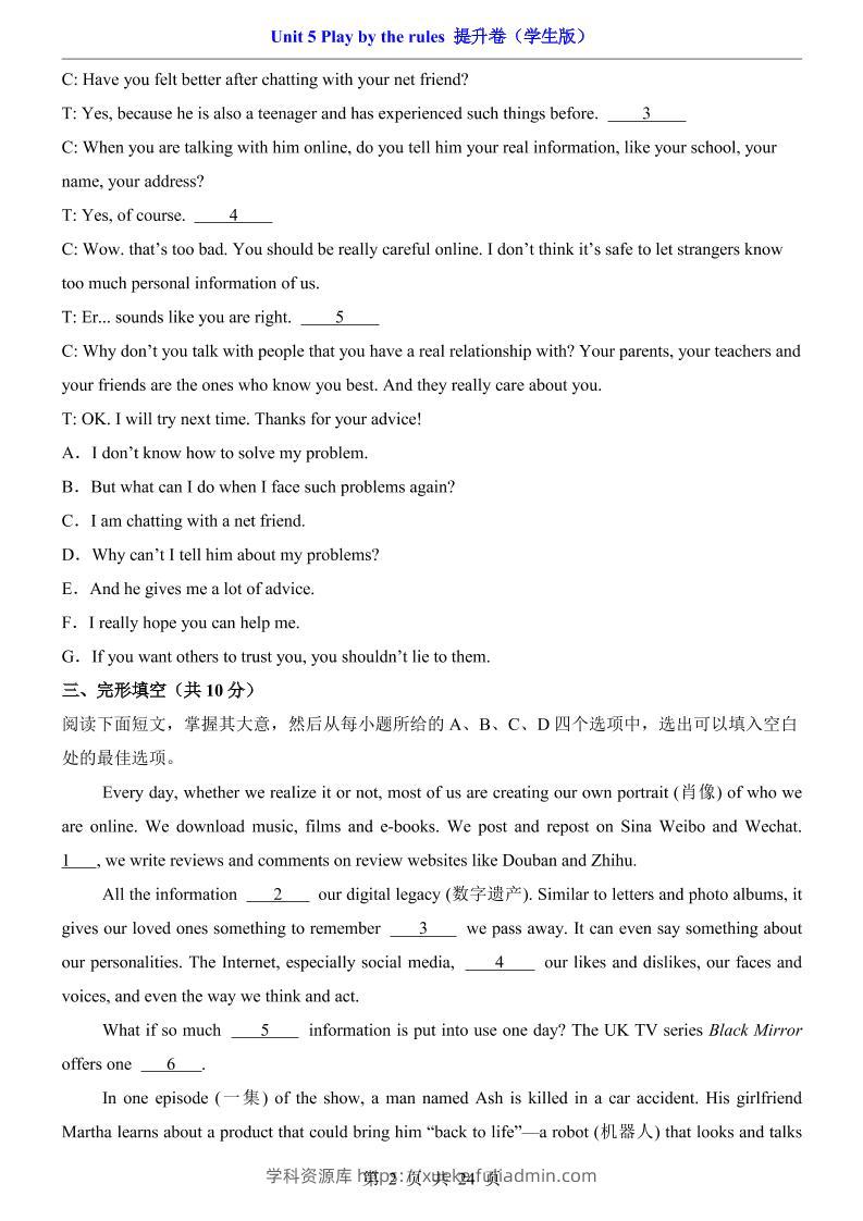 八年级上英语Unit5提升卷(外研版)学科资源库1小时前发布关注私信2313八年级上英语Unit5提升卷(外研版)此内容为付费资源,请付费后查看¥10黄金会员免费钻石会员免费立即购买您当前未登录!建议登陆后购买,可保存购买订单格式pdf页数24 页大小1014.27 KB付费资源 ——预览已结束,还剩22页未读——开通会员后可免费下载高清完整文档 © 版权声明文章版权归作者所有,未经允许请勿转载。THE END初中英语 喜欢就支持一下吧点赞13 分享QQ空间微博QQ好友海报分享复制链接收藏
