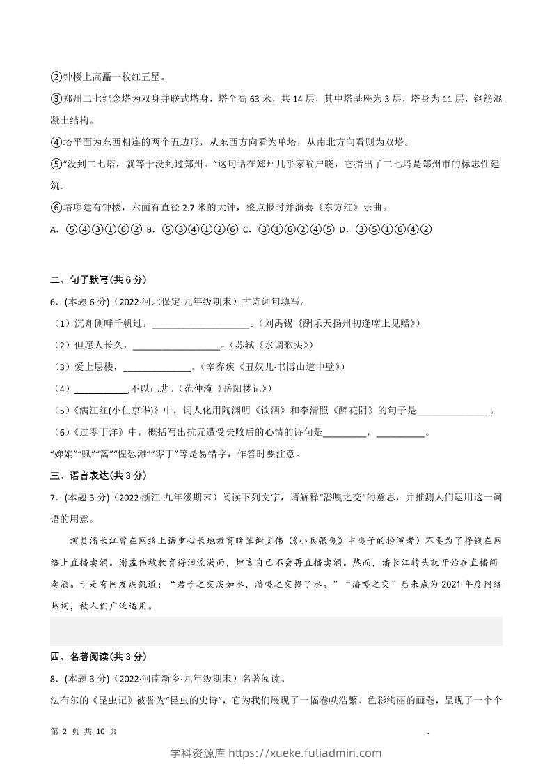 九年级上语文期末突破卷2学科资源库13天前发布关注私信527九年级上语文期末突破卷2此内容为付费资源,请付费后查看¥10黄金会员免费钻石会员免费立即购买您当前未登录!建议登陆后购买,可保存购买订单格式pdf页数28 页大小1.34 MB付费资源 ——预览已结束,还剩26页未读——开通会员后可免费下载高清完整文档 © 版权声明文章版权归作者所有,未经允许请勿转载。THE END初中语文 喜欢就支持一下吧点赞7 分享QQ空间微博QQ好友海报分享复制链接收藏