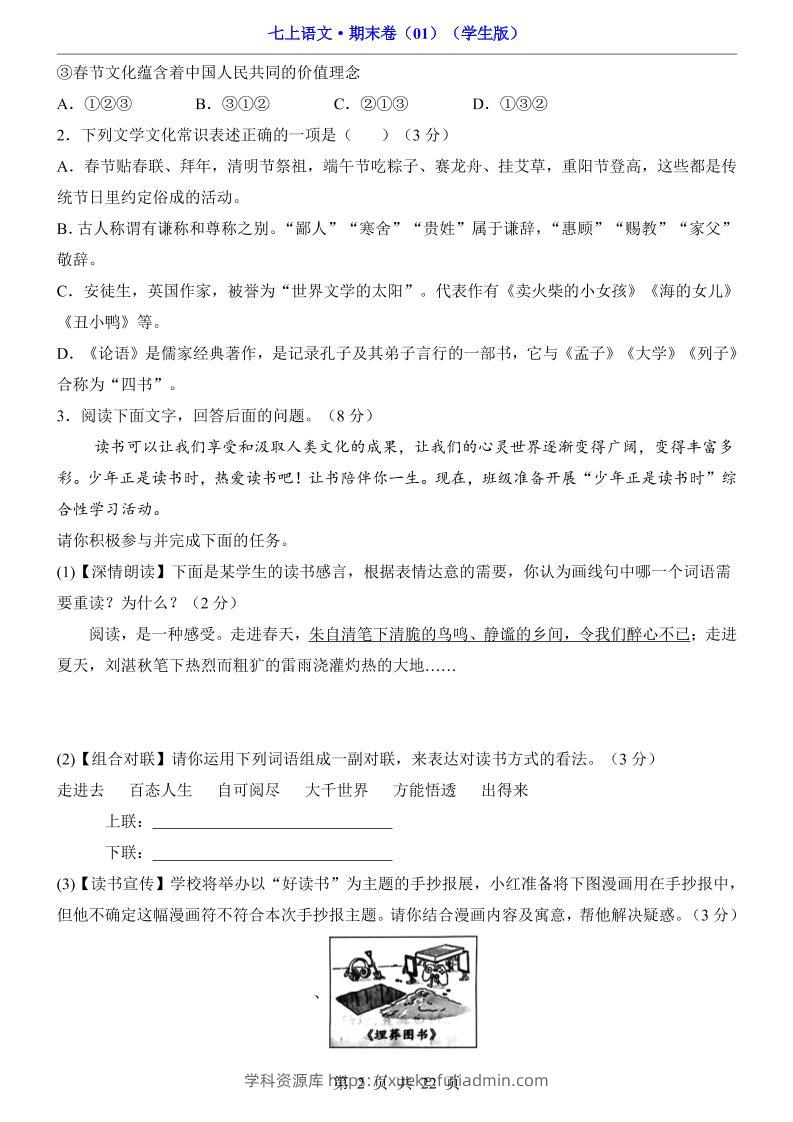 七年级上语文期末卷01学科资源库5天前发布关注私信3915七年级上语文期末卷01此内容为付费资源,请付费后查看¥10黄金会员免费钻石会员免费立即购买您当前未登录!建议登陆后购买,可保存购买订单格式pdf页数22 页大小618.10 KB付费资源 ——预览已结束,还剩20页未读——开通会员后可免费下载高清完整文档 © 版权声明文章版权归作者所有,未经允许请勿转载。THE END初中语文 喜欢就支持一下吧点赞15 分享QQ空间微博QQ好友海报分享复制链接收藏