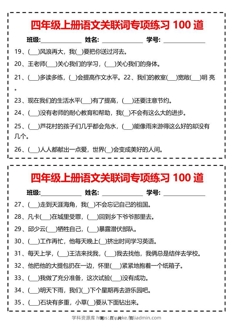 四上语文关联词专项练习100道(含答案12页)学科资源库21小时前发布关注私信286四上语文关联词专项练习100道(含答案12页)此内容为付费资源,请付费后查看¥10黄金会员免费钻石会员免费立即购买您当前未登录!建议登陆后购买,可保存购买订单格式pdf页数12 页大小562.08 KB付费资源 ——预览已结束,还剩10页未读——开通会员后可免费下载高清完整文档 © 版权声明文章版权归作者所有,未经允许请勿转载。THE END小学语文 喜欢就支持一下吧点赞6 分享QQ空间微博QQ好友海报分享复制链接收藏