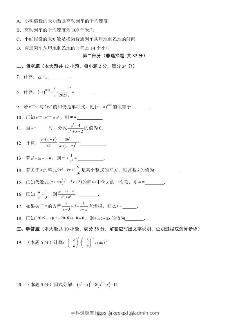七年级上数学第3次月考卷(沪教54版)学科资源库5天前发布关注私信316七年级上数学第3次月考卷(沪教54版)此内容为付费资源,请付费后查看¥10黄金会员免费钻石会员免费立即购买您当前未登录!建议登陆后购买,可保存购买订单格式pdf页数18 页大小626.57 KB付费资源 ——预览已结束,还剩16页未读——开通会员后可免费下载高清完整文档 © 版权声明文章版权归作者所有,未经允许请勿转载。THE END初中数学 喜欢就支持一下吧点赞6 分享QQ空间微博QQ好友海报分享复制链接收藏