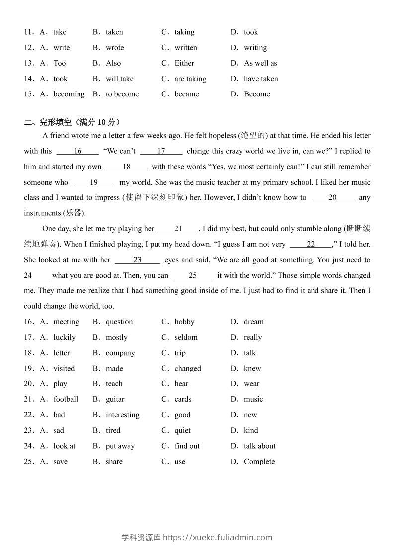 七年级上英语第一次月考试卷(沪教版)学科资源库22小时前发布关注私信3912七年级上英语第一次月考试卷(沪教版)此内容为付费资源,请付费后查看¥10黄金会员免费钻石会员免费立即购买您当前未登录!建议登陆后购买,可保存购买订单格式pdf页数17 页大小309.51 KB付费资源 ——预览已结束,还剩15页未读——开通会员后可免费下载高清完整文档 © 版权声明文章版权归作者所有,未经允许请勿转载。THE END初中英语 喜欢就支持一下吧点赞12 分享QQ空间微博QQ好友海报分享复制链接收藏