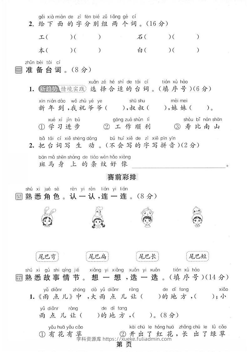 一年级上语文第八单元测试卷学科资源库3小时前发布关注私信206一年级上语文第八单元测试卷此内容为付费资源,请付费后查看¥10黄金会员免费钻石会员免费立即购买您当前未登录!建议登陆后购买,可保存购买订单格式pdf页数5 页大小5.11 MB付费资源 ——预览已结束,还剩3页未读——开通会员后可免费下载高清完整文档 © 版权声明文章版权归作者所有,未经允许请勿转载。THE END小学语文 喜欢就支持一下吧点赞6 分享QQ空间微博QQ好友海报分享复制链接收藏
