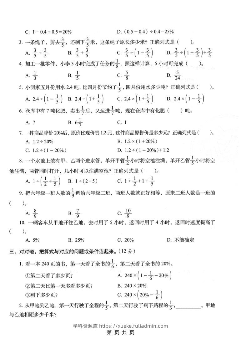 六年级上数学解决问题专项检测卷《人教版》学科资源库32天前发布关注私信4714六年级上数学解决问题专项检测卷《人教版》此内容为付费资源,请付费后查看¥10黄金会员免费钻石会员免费立即购买您当前未登录!建议登陆后购买,可保存购买订单格式pdf页数5 页大小2.26 MB付费资源 ——预览已结束,还剩3页未读——开通会员后可免费下载高清完整文档 © 版权声明文章版权归作者所有,未经允许请勿转载。THE END小学数学 喜欢就支持一下吧点赞14 分享QQ空间微博QQ好友海报分享复制链接收藏