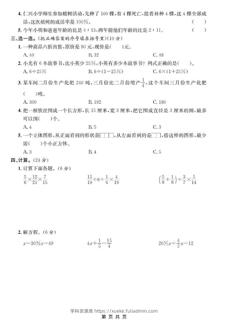 六年级上数学期末拔尖测试卷《北师版》学科资源库31天前发布关注私信5010六年级上数学期末拔尖测试卷《北师版》此内容为付费资源,请付费后查看¥10黄金会员免费钻石会员免费立即购买您当前未登录!建议登陆后购买,可保存购买订单格式pdf页数5 页大小772.78 KB付费资源 ——预览已结束,还剩3页未读——开通会员后可免费下载高清完整文档 © 版权声明文章版权归作者所有,未经允许请勿转载。THE END小学数学 喜欢就支持一下吧点赞10 分享QQ空间微博QQ好友海报分享复制链接收藏