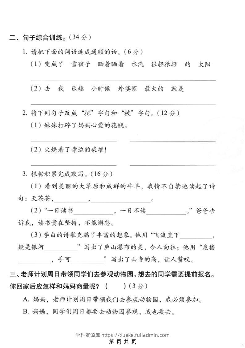 二年级上语文期末质量测试卷学科资源库30天前发布关注私信5715二年级上语文期末质量测试卷此内容为付费资源,请付费后查看¥10黄金会员免费钻石会员免费立即购买您当前未登录!建议登陆后购买,可保存购买订单格式pdf页数5 页大小1.45 MB付费资源 ——预览已结束,还剩3页未读——开通会员后可免费下载高清完整文档 © 版权声明文章版权归作者所有,未经允许请勿转载。THE END小学语文 喜欢就支持一下吧点赞15 分享QQ空间微博QQ好友海报分享复制链接收藏