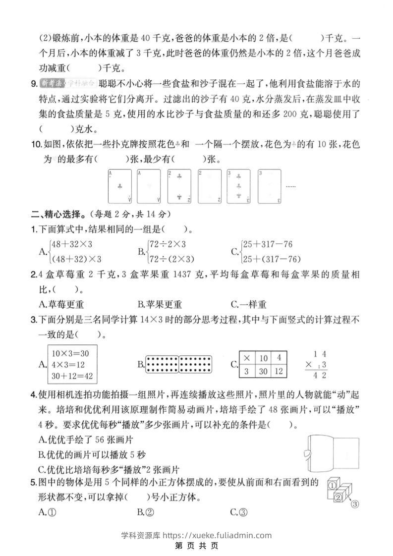 三年级上数学期末拔尖测试卷5《苏教版》学科资源库28天前发布关注私信429三年级上数学期末拔尖测试卷5《苏教版》此内容为付费资源,请付费后查看¥10黄金会员免费钻石会员免费立即购买您当前未登录!建议登陆后购买,可保存购买订单格式pdf页数5 页大小3.73 MB付费资源 ——预览已结束,还剩3页未读——开通会员后可免费下载高清完整文档 © 版权声明文章版权归作者所有,未经允许请勿转载。THE END小学数学 喜欢就支持一下吧点赞9 分享QQ空间微博QQ好友海报分享复制链接收藏