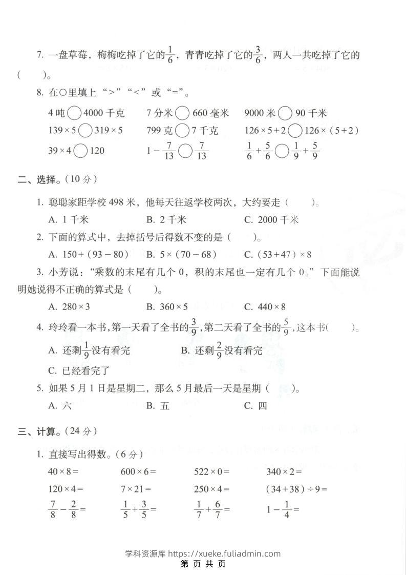 三年级上数学期末拔尖测试卷4《西师版》学科资源库25天前发布关注私信457三年级上数学期末拔尖测试卷4《西师版》此内容为付费资源,请付费后查看¥10黄金会员免费钻石会员免费立即购买您当前未登录!建议登陆后购买,可保存购买订单格式pdf页数5 页大小1.16 MB付费资源 ——预览已结束,还剩3页未读——开通会员后可免费下载高清完整文档 © 版权声明文章版权归作者所有,未经允许请勿转载。THE END小学数学 喜欢就支持一下吧点赞7 分享QQ空间微博QQ好友海报分享复制链接收藏