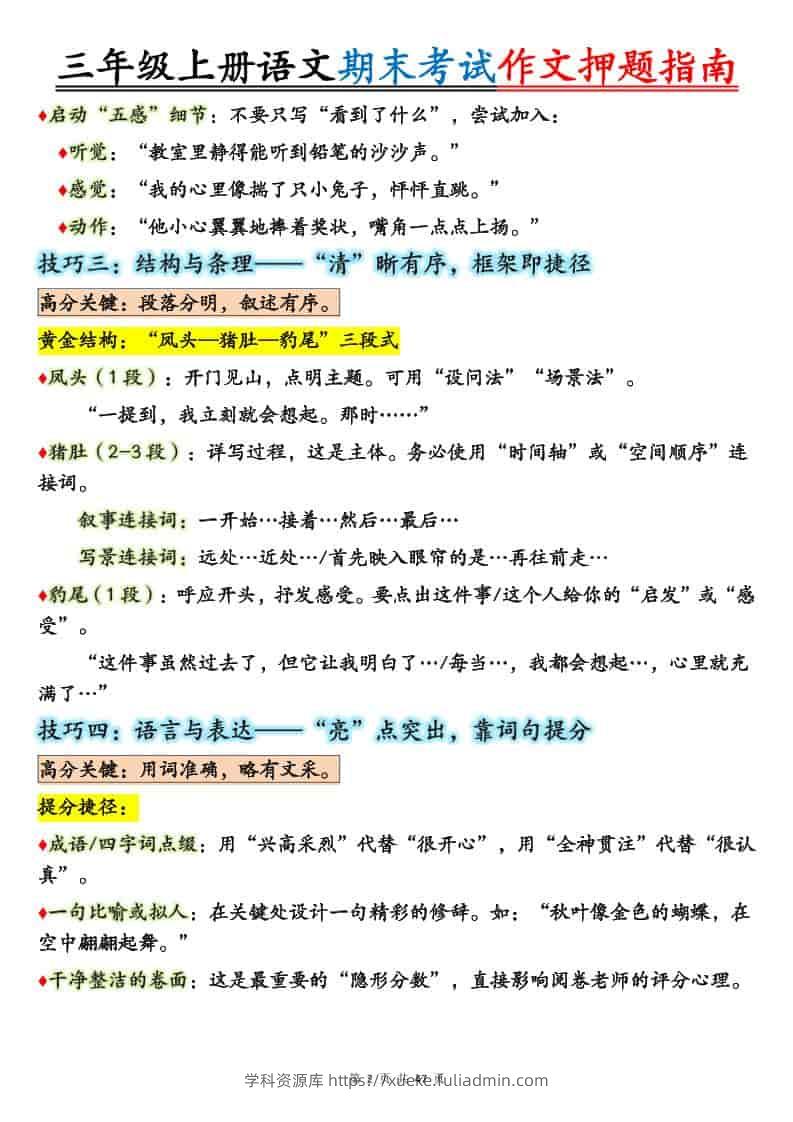 25秋三上语文期末考试作文押题写作指南+范文47页学科资源库15天前发布关注私信331425秋三上语文期末考试作文押题写作指南+范文47页此内容为付费资源,请付费后查看¥10黄金会员免费钻石会员免费立即购买您当前未登录!建议登陆后购买,可保存购买订单格式pdf页数47 页大小1.68 MB付费资源 ——预览已结束,还剩45页未读——开通会员后可免费下载高清完整文档 © 版权声明文章版权归作者所有,未经允许请勿转载。THE END小学语文 喜欢就支持一下吧点赞14 分享QQ空间微博QQ好友海报分享复制链接收藏