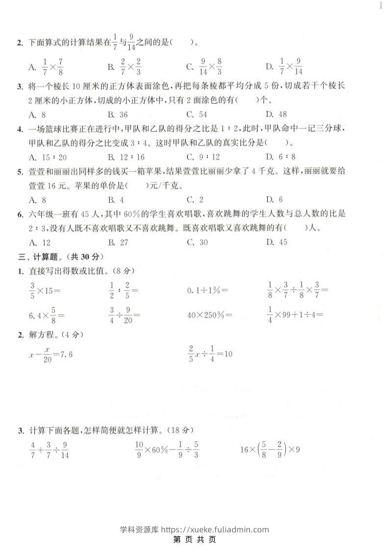 六年级上数学期末测试卷3《苏教版》学科资源库15天前发布关注私信499六年级上数学期末测试卷3《苏教版》此内容为付费资源,请付费后查看¥10黄金会员免费钻石会员免费立即购买您当前未登录!建议登陆后购买,可保存购买订单格式pdf页数5 页大小1.73 MB付费资源 ——预览已结束,还剩3页未读——开通会员后可免费下载高清完整文档 © 版权声明文章版权归作者所有,未经允许请勿转载。THE END小学数学 喜欢就支持一下吧点赞9 分享QQ空间微博QQ好友海报分享复制链接收藏