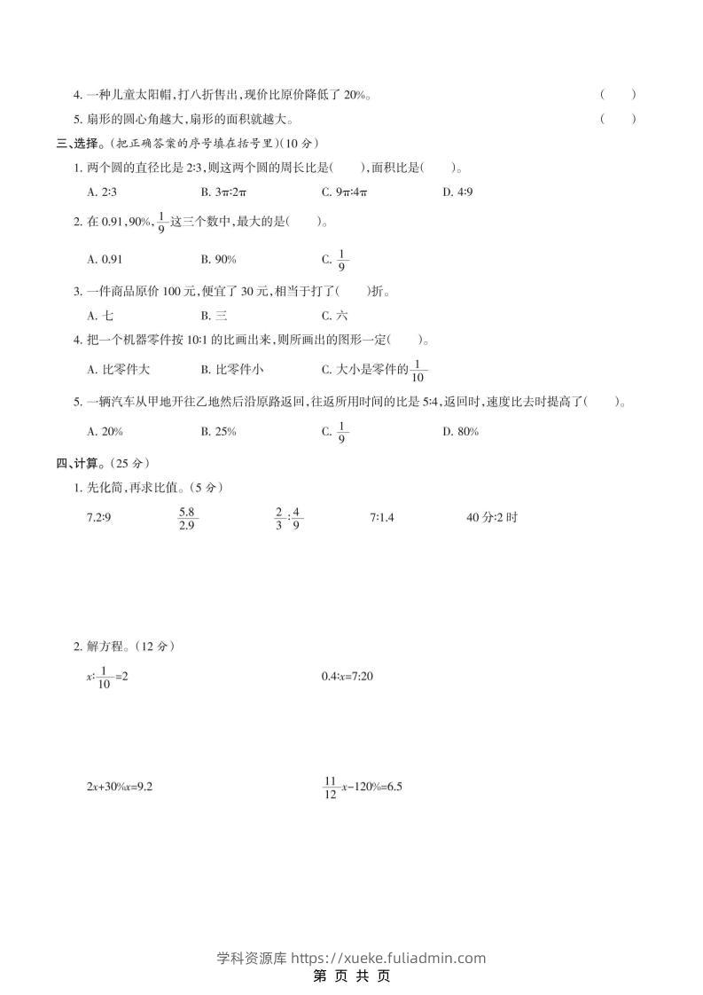 六上冀教版数学【期末测试卷5】学科资源库14天前发布关注私信4110六上冀教版数学【期末测试卷5】此内容为付费资源,请付费后查看¥10黄金会员免费钻石会员免费立即购买您当前未登录!建议登陆后购买,可保存购买订单格式pdf页数5 页大小2.17 MB付费资源 ——预览已结束,还剩3页未读——开通会员后可免费下载高清完整文档 © 版权声明文章版权归作者所有,未经允许请勿转载。THE END小学数学 喜欢就支持一下吧点赞10 分享QQ空间微博QQ好友海报分享复制链接收藏